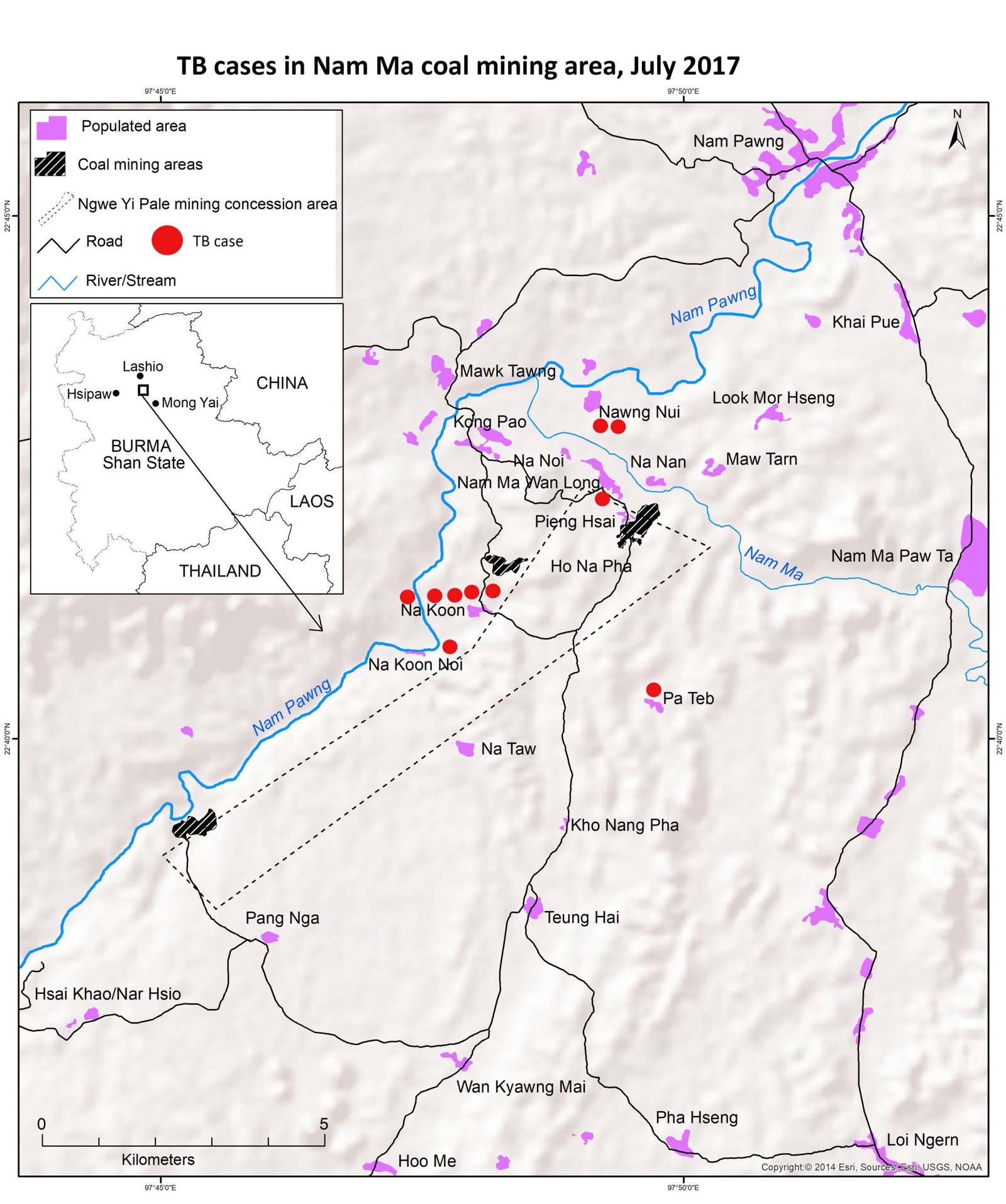 Recent tuberculosis (TB) cases among villagers living in the Nam Ma coal mining area in Hsipaw, northern Shan State, have raised concerns over additional, hitherto unforeseen health impacts on local communities of coal mining.