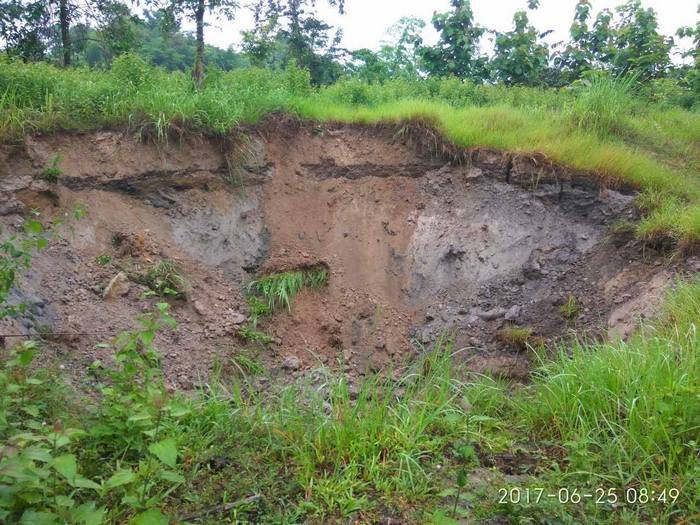 Most of the mining is taking place near Na Koon village, using underground tunnels. In recent months, villagers have been alarmed to see cracks appearing in the earth nearby. On June 24, 2017, a 25-feet deep sinkhole suddenly appeared in a cornfield west of the mine. The next day, smoke suddenly began pouring out of one of the mining tunnels.