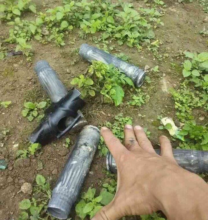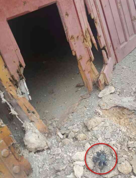 Aerial bomb fragments in Mong Nawng high school compound on 10. 11. 2015
