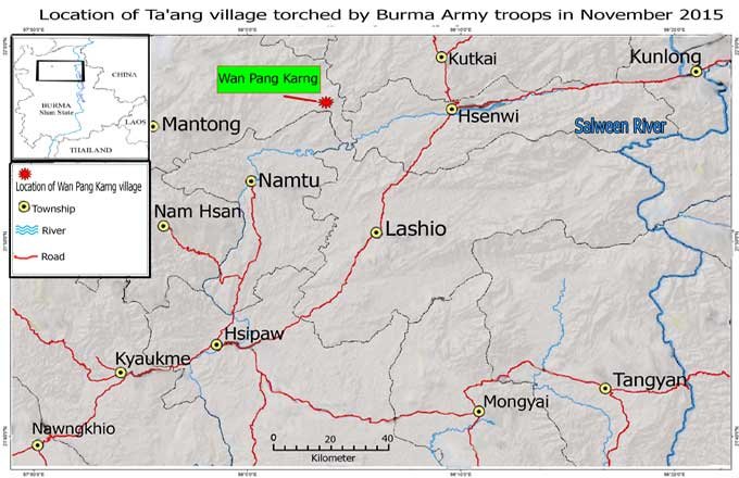 Burmese government troops torch Ta’ang village in northern Shan State; farmer forced to guide troops shot dead in battle