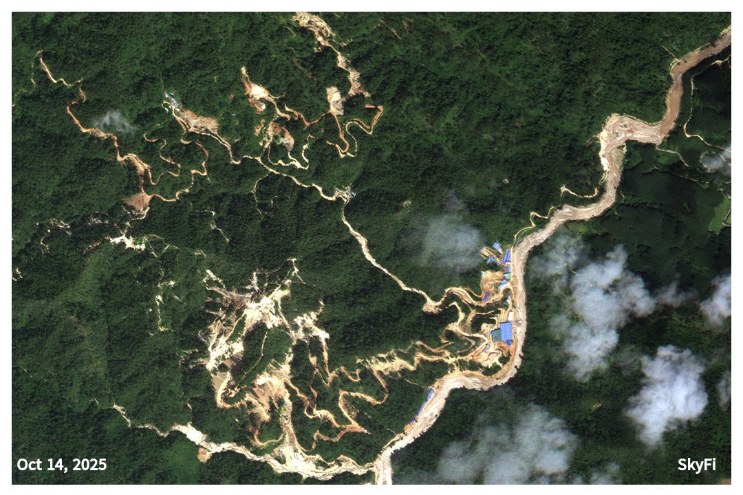 New satellite images show expansion of rare earth and gold mines along the Kok River in Mong Yawn, southern Mong Hsat township, eastern Shan State, which according to inside sources are operated by China Investment Mining Company, backed by the Chinese government.