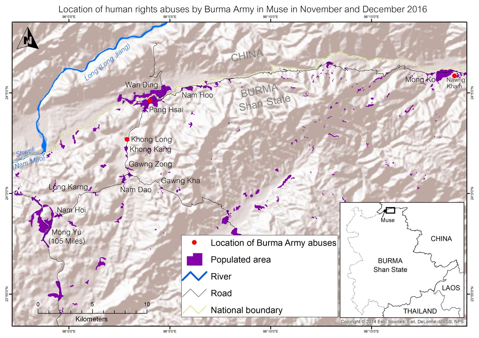On 30 November 2016, Burma Army troops under Infantry Division 33 looted and damaged fourteen houses at Wan Khong Long village, Pang Hsai, Muse township, northern Shan State.