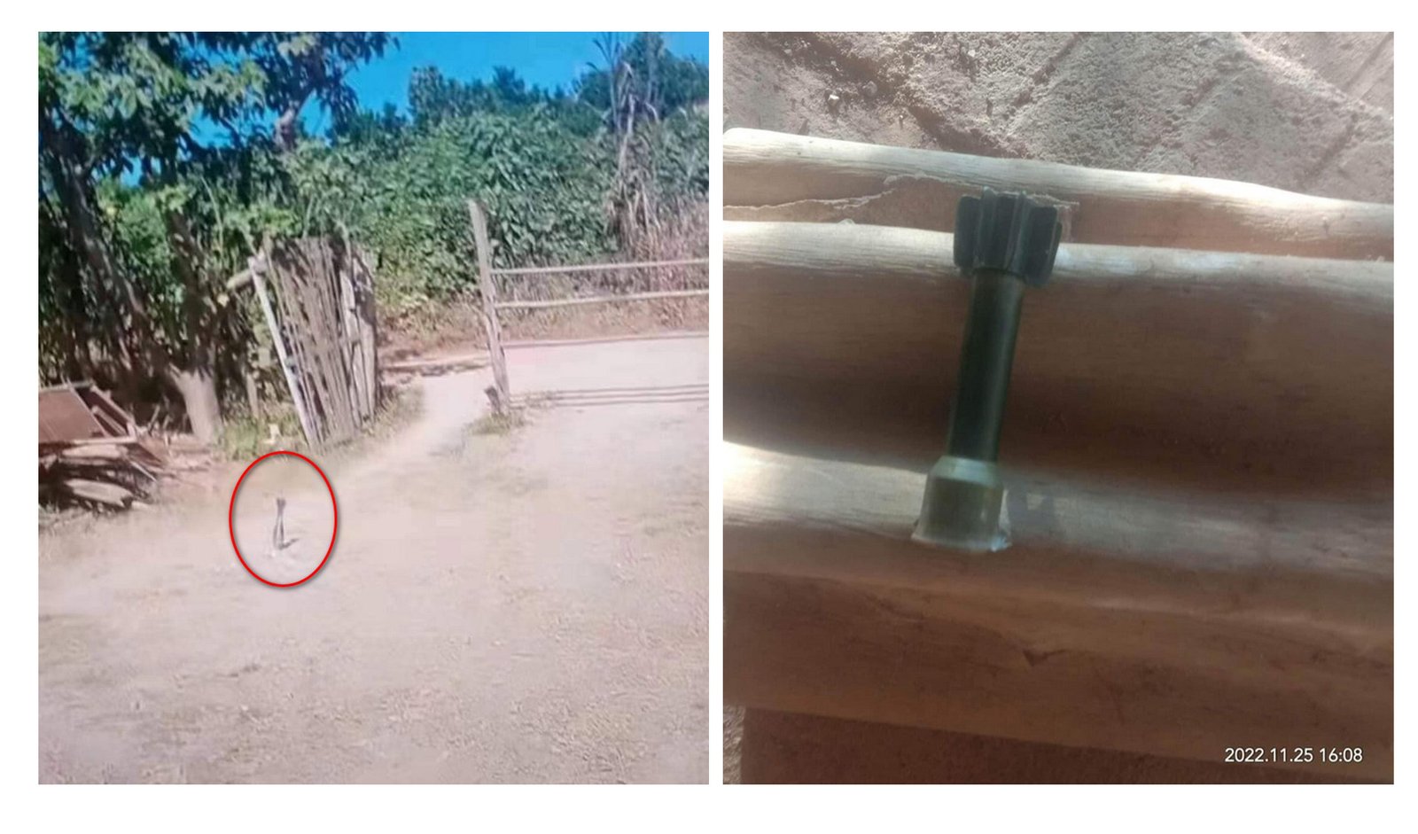 Unexploded Burma Army shells in Koong Sar village