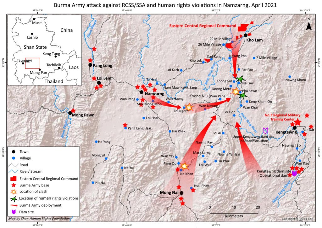 The regime’s scorched earth operations in Shan State over two decades ago were aimed to crush the Shan resistance and seize control of the area’s rich natural resources. Since then, the Burma Army has continuously expanded into Shan State, selling off our lands, forests and rivers to the highest bidder. This process has accelerated since the February 1 coup, and now the generals are pushing through long-held plans to sell off the mighty Salween River, the lifeblood of millions in eastern Burma, to hydropower investors. In May, the regime gave the go-ahead for China’s Hanergy to build the first dam on the Salween, at Kunlong in northern Shan State. 90% of the 1,400 megawatts produced will go to China.