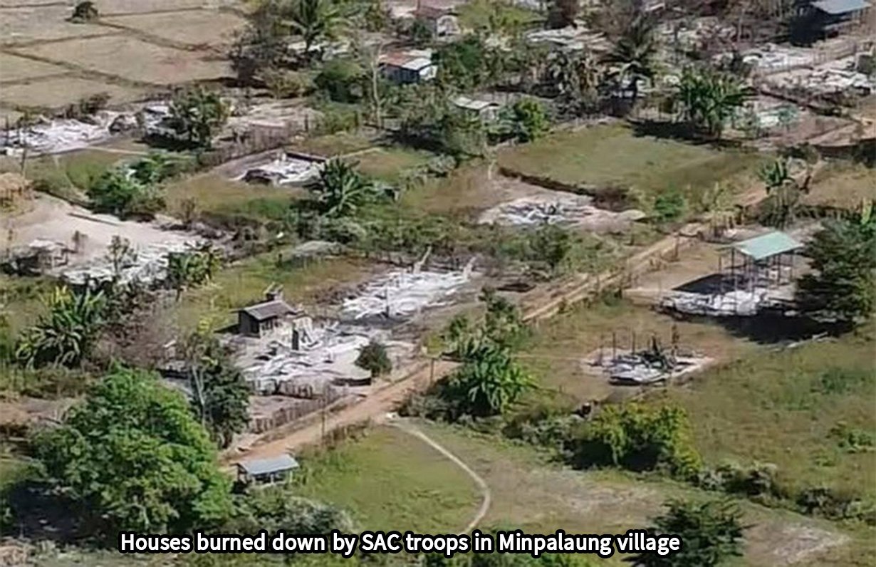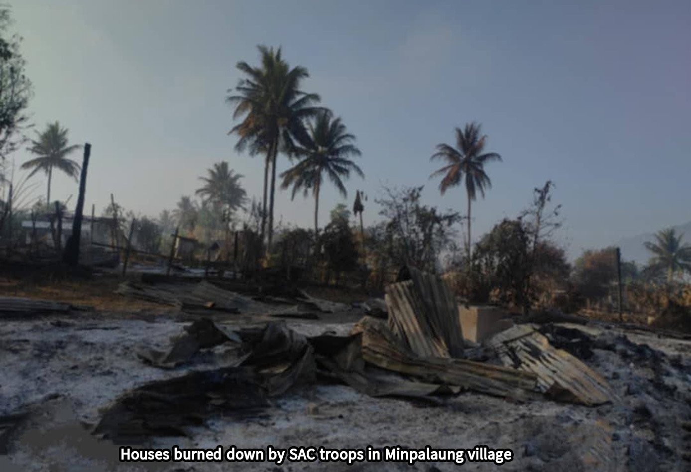 After the clash, the SAC troops continued towards Minpalaung village, and on the morning of December 22, 2024, at around 10 am, set fire to the entire village, destroying approximately 170 households. On the same day, SAC fighter jets and helicopters bombed forested areas around the village, causing further destruction.