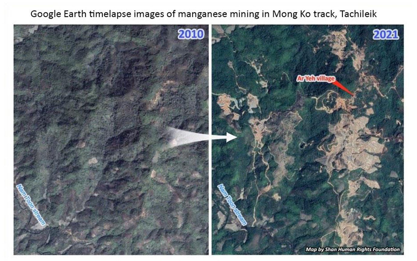 As detailed by SHRF in an earlier report, manganese mining by at least nine companies in the hills above Mong Ko, ten kilometers north of Tachileik town, has caused dangerous levels of manganese in the Hok (Ruak) River. As water from the river is used by the Mae Sai municipal water system, the local Thai water authorities have had to implement special filtration measures.