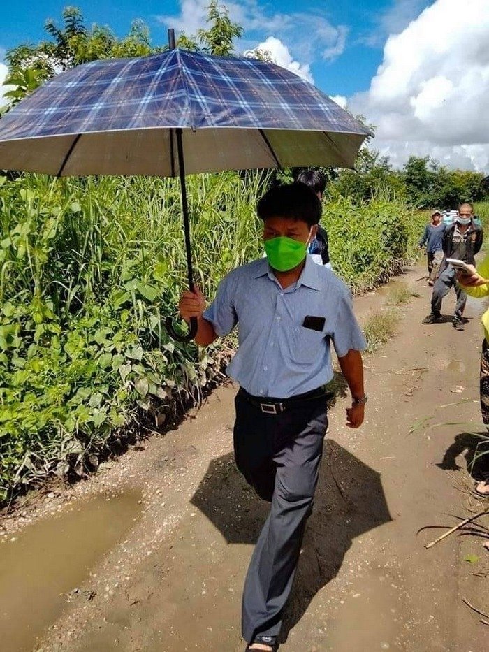 From 9 to 10 am, a local village tract chairman, a Tachileik GAD officer, four farmers’ representatives and three managers from Hong Pang company joined a meeting at the Hong Luek police station. Only four farmers joined the meeting because of Covid 19 restrictions. The village tract chairman said that if any more farmers joined, they would be fined, .so about ten farmers waited outside the police station.