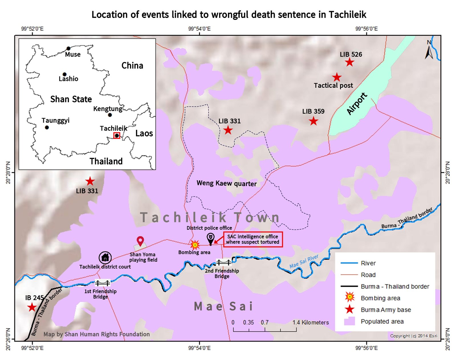 The intelligence officers informed Ai Hseng Mong that CCTV had recorded him riding his motorbike near the explosion site, and beat him severely to force him to confess. According to others detained at the same time but later released, Ai Hseng Mong was beaten until unconscious. Ai Hseng Mong was repeatedly beaten for one week, until he ended up confessing to the crime. He was then charged, and finally on June 1, the Tachileik District Court handed down his sentence. He was then transferred to Kengtung Prison.